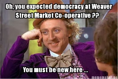 So. I read in this week's Weaver Street Market Co-operative employee Market Messenger that the sole candidate in the annual Worker-Owner Board Director election [Curt Brinkmeyer] was ... elected.